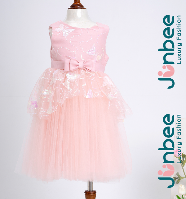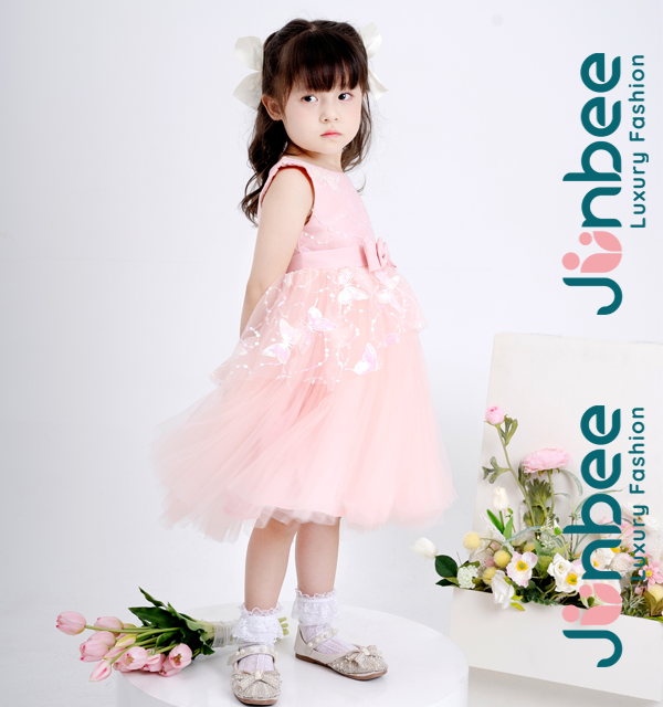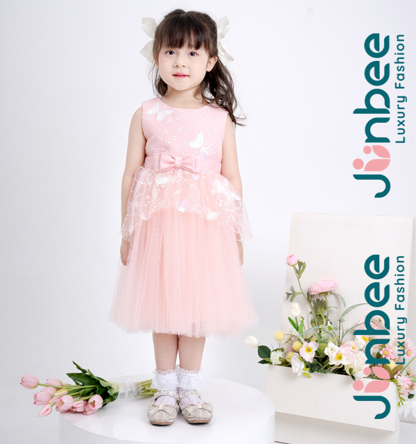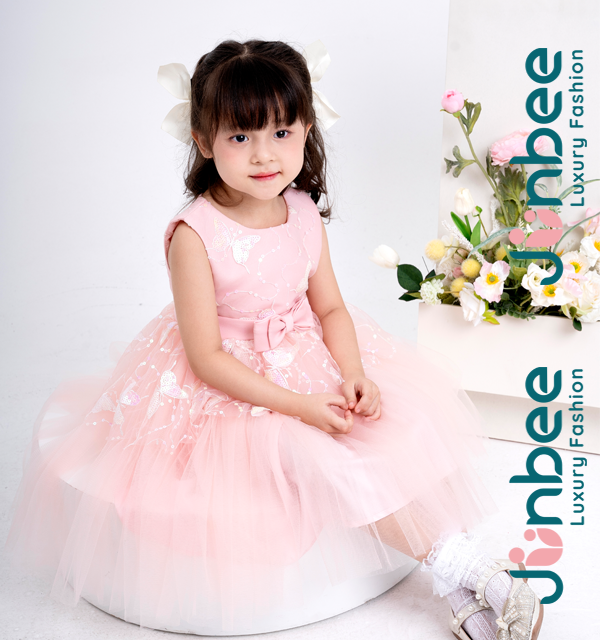 Đầm Váy Hồng Ngắn Tay Bé Gái
